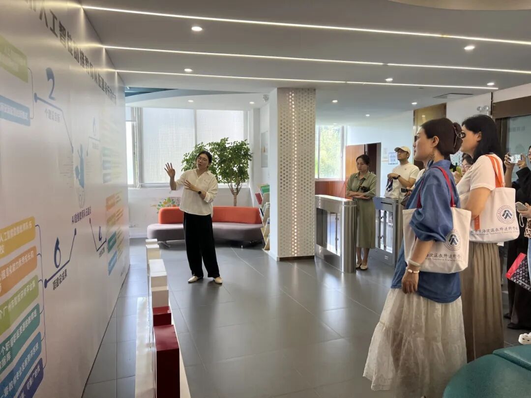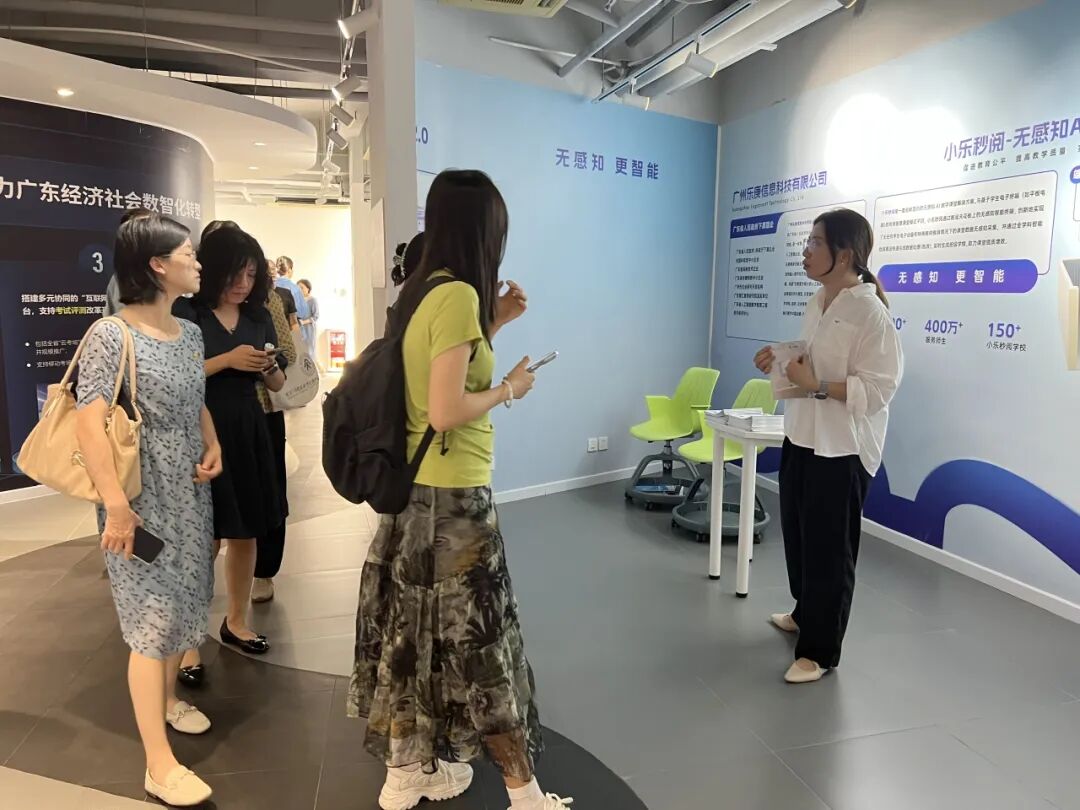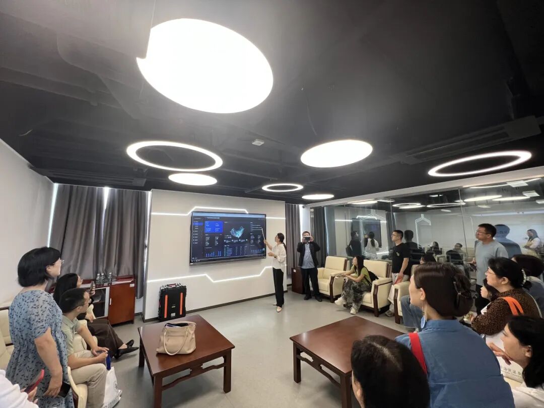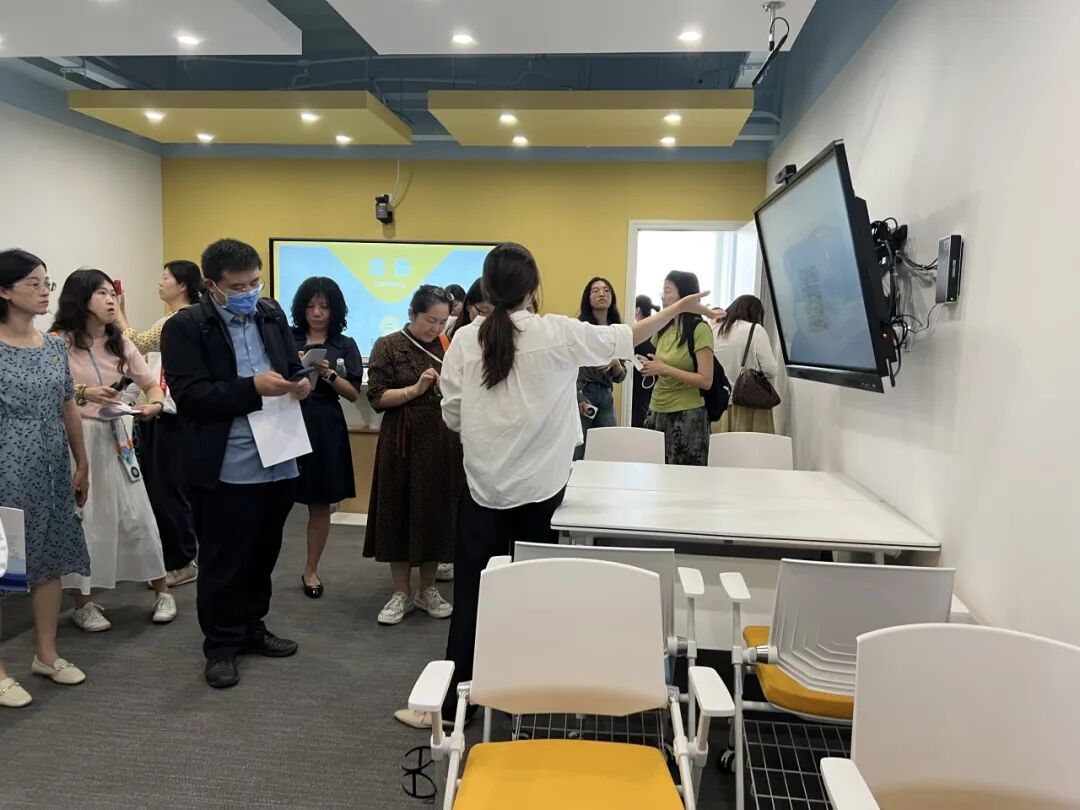 来宾们参观了广州开放大学集培训、研究、实践、展示、实验于一体的智慧师训创新实践中心,通过实地考察智能研训室、AI应用空间、AI+教师专业发展观测室、元宇宙数字教研场景等各个专业场室的功能特点和主要教育应用场景,直观感受虚实结合的研修新模式,进一步加深对教育数字化应用的理解。 参观现场