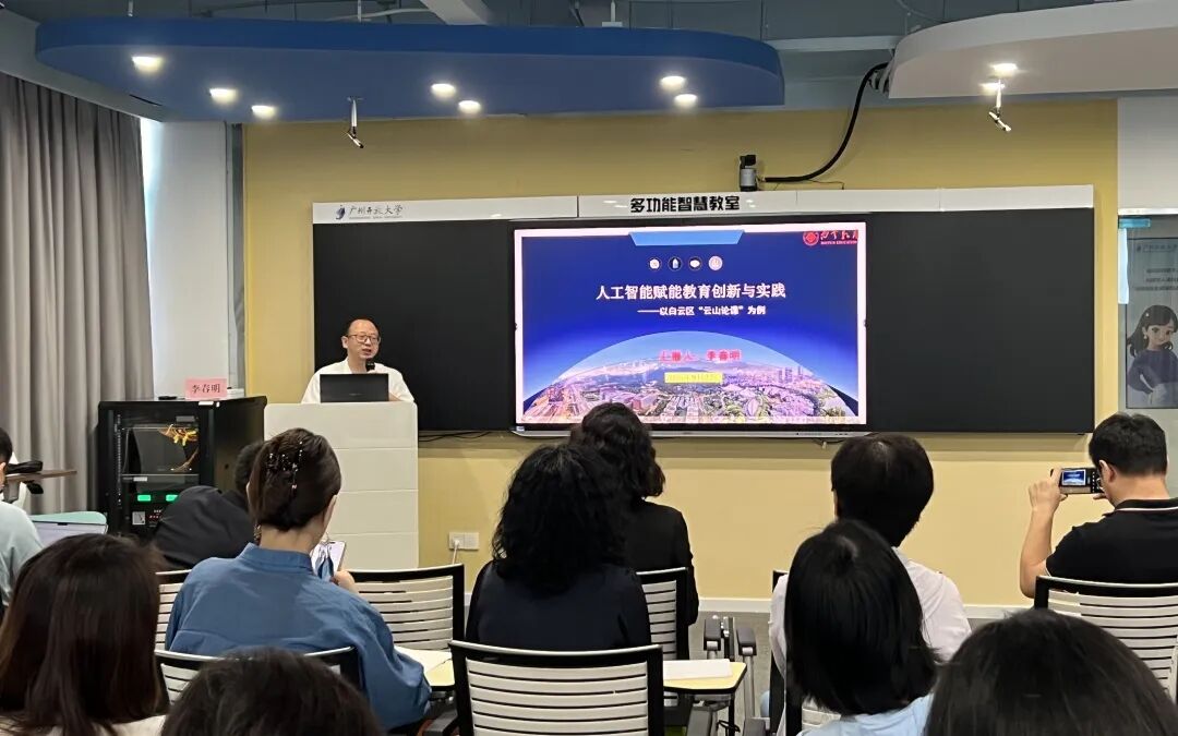 广州市白云区教育研究院李春明副院长以《人工智能赋能教学创新应用与实践》为题,围绕白云区“云山论课”品牌实践,结合实践案例分享了区域在“专家引领+工具落地+教研转型”路径下推进AI教育的阶段性成果。他强调AI的核心价值在于释放教师精力,助力教学创新与学生成长。会后双方展开深入交流,海淀区代表高度认可该实践对提升教师数字素养的借鉴意义。