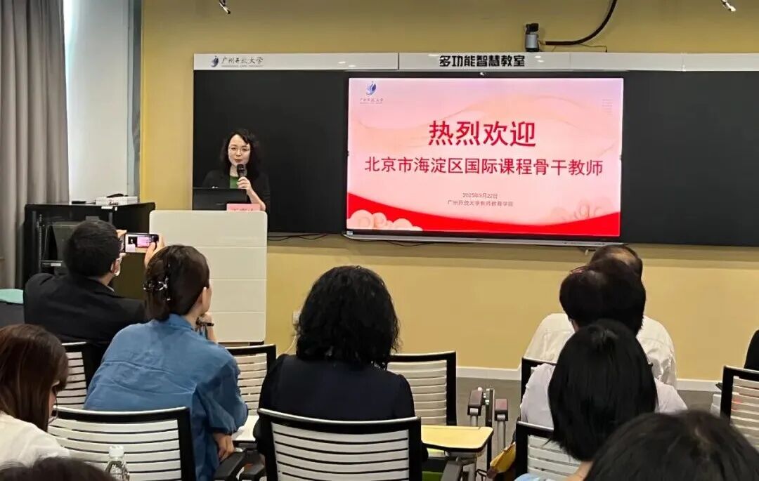 2025年9月22日,北京市海淀区国际课程骨干教师学习团一行25名骨干教师赴广州开放大学学习交流,活动围绕“AI助推教师专业发展”主题开展。广州开放大学教师教育学院院长王寒冰、广州市白云区教育研究院副院长李春明及教师学院相关工作人员参与了本次活动。